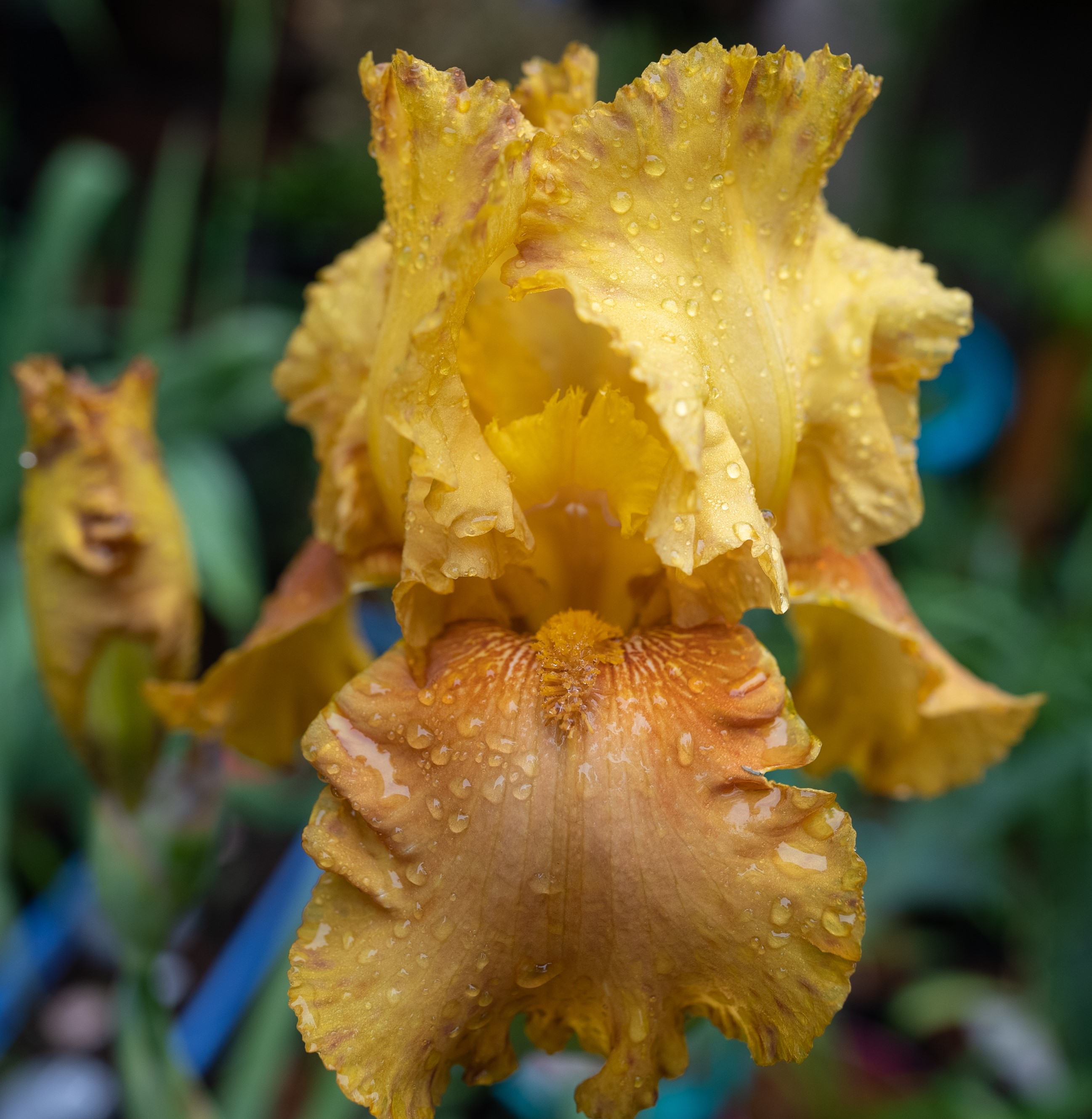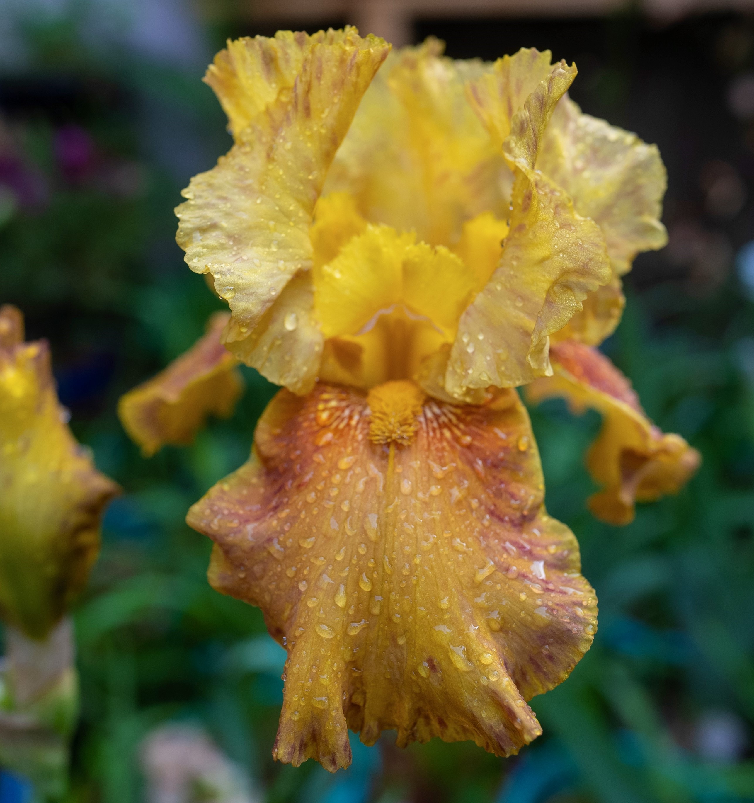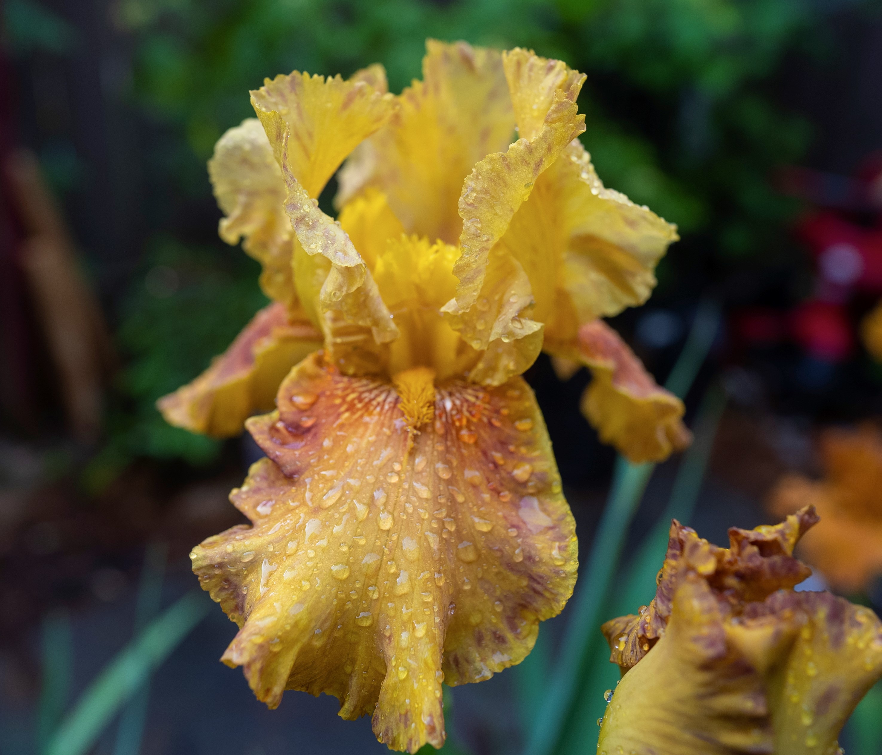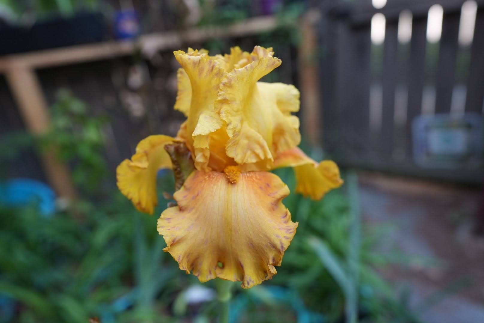 Old Gold Bitone with wine colored speckles along the rim of the falls and standards.